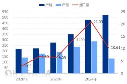 产能上去了,但国内需求没跟上,市场从供需平衡变成了供大于求。厂家为了消化库存大力开拓海外市场,2024年出口量首次突破21万吨,今年1-4月出口6.81万吨,比去年同期又增长了11.82%。预计上半年出口能到10.61万吨左右。